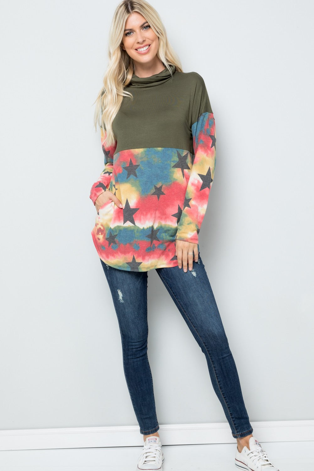 Celeste Full Size Tie-Dye Star Print Long Sleeve Blouse