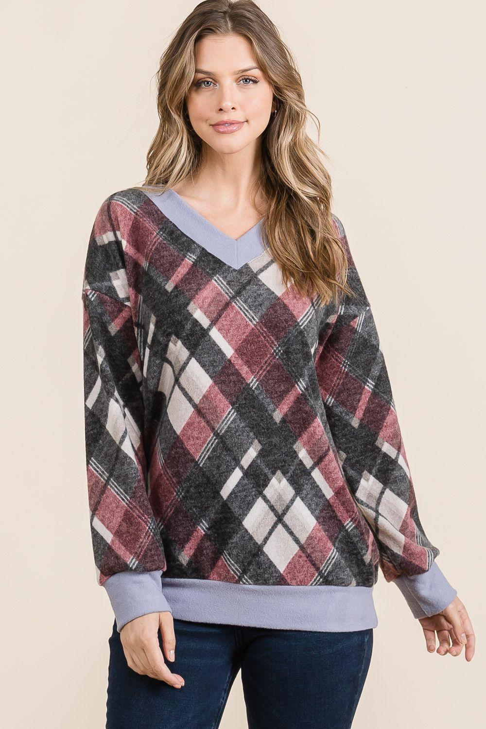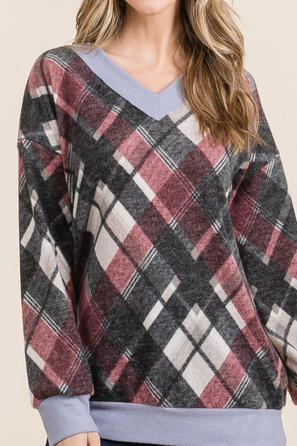 Celeste Plaid V-Neck Long Sleeve T-Shirt