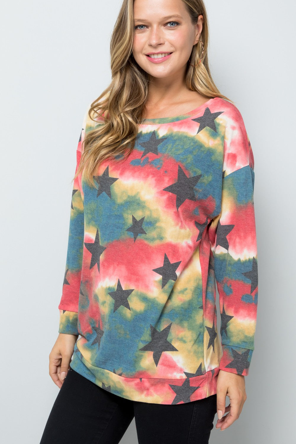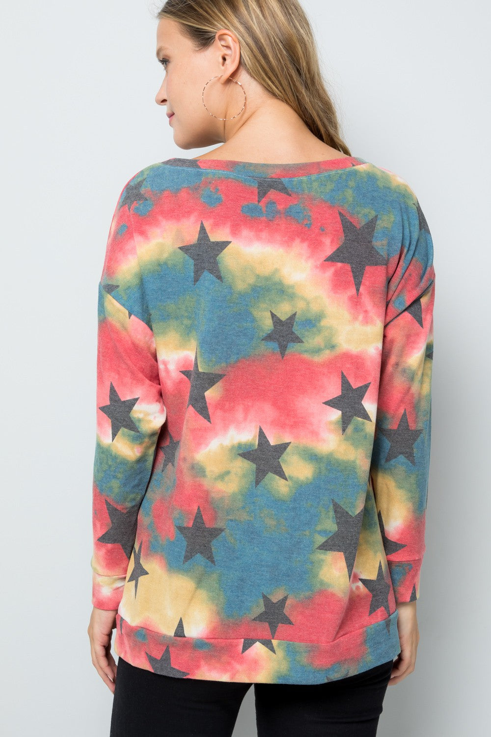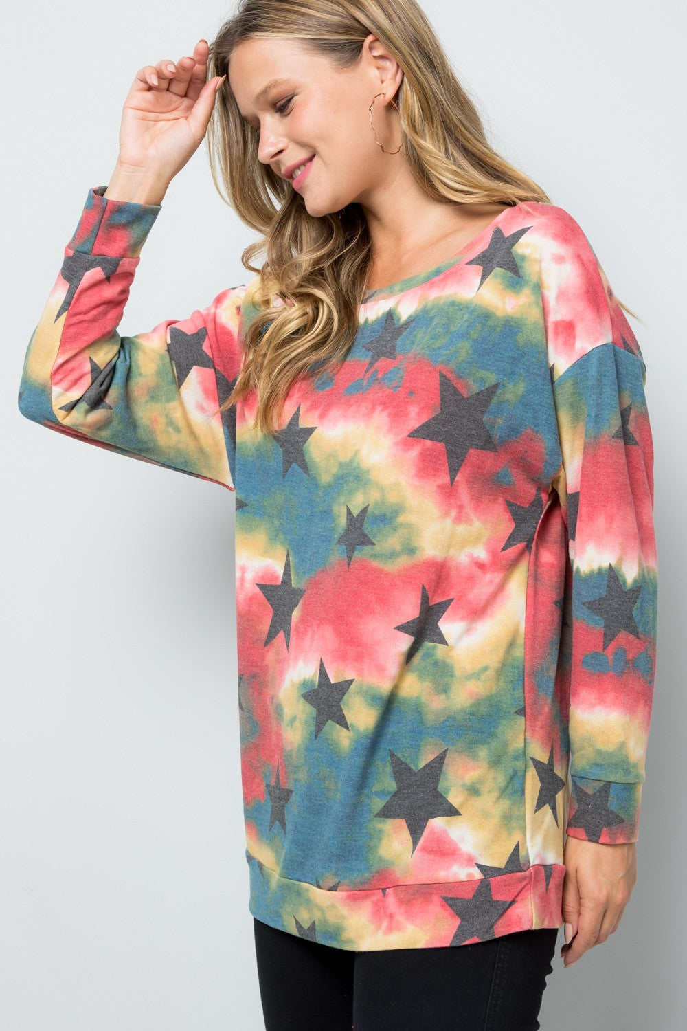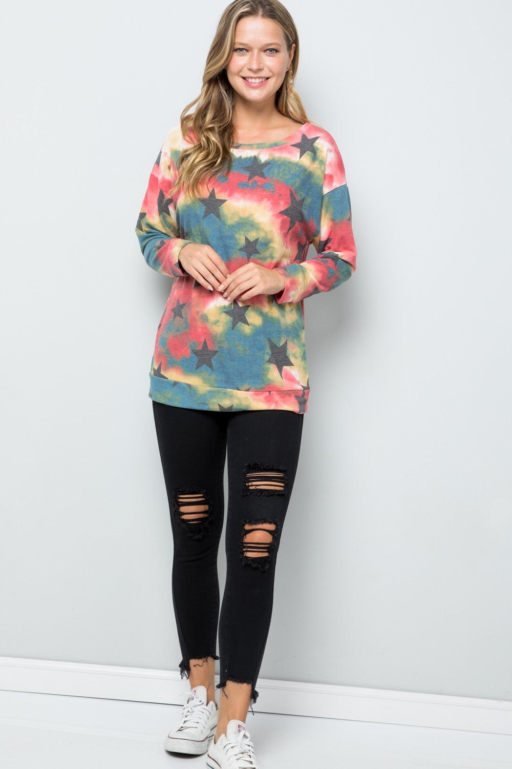 Celeste Tie-Dye Star Round Neck Long Sleeve T-Shirt