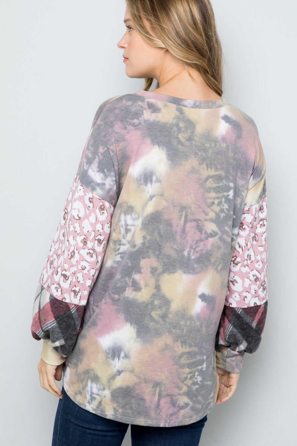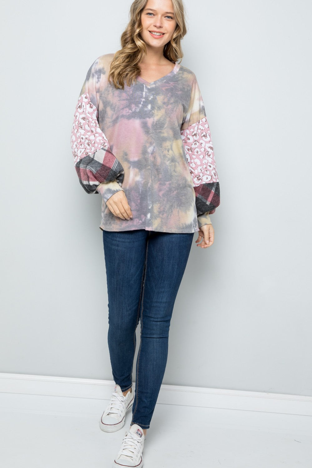 Celeste Tie-Dye V-Neck Printed Sleeve Blouse