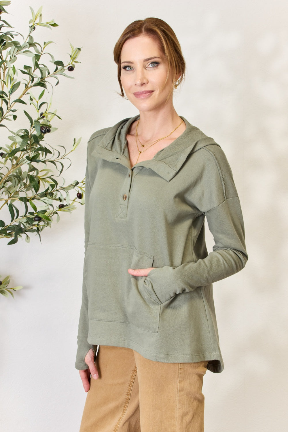 The Half Button Long Sleeve Hoodie with Pocket is a versatile and stylish garment. With its half button design, it offers a unique twist on the classic hoodie, while the added pocket adds functionality and convenience.