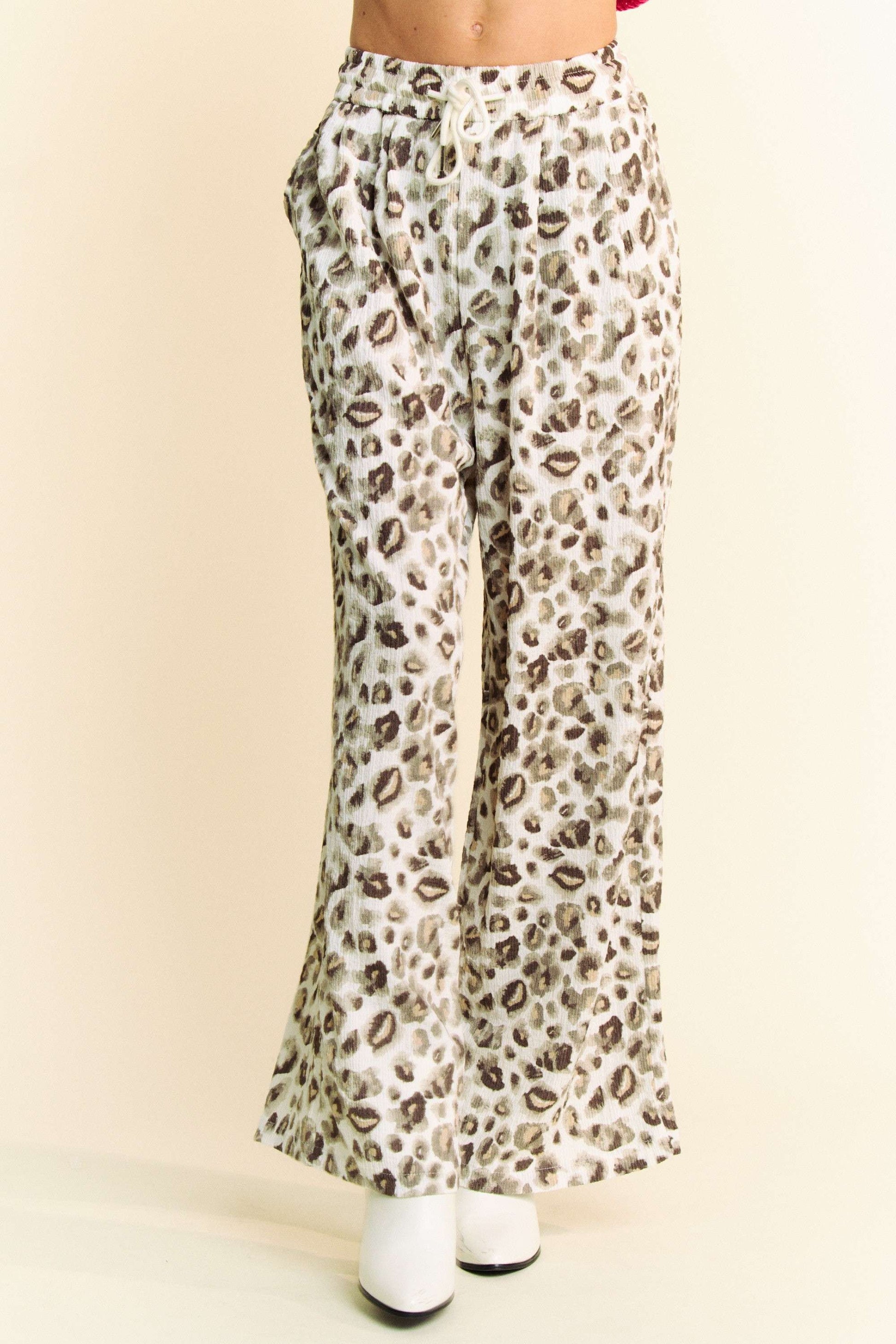 Davi & Dani Drawstring Leopard Wide Leg Pants