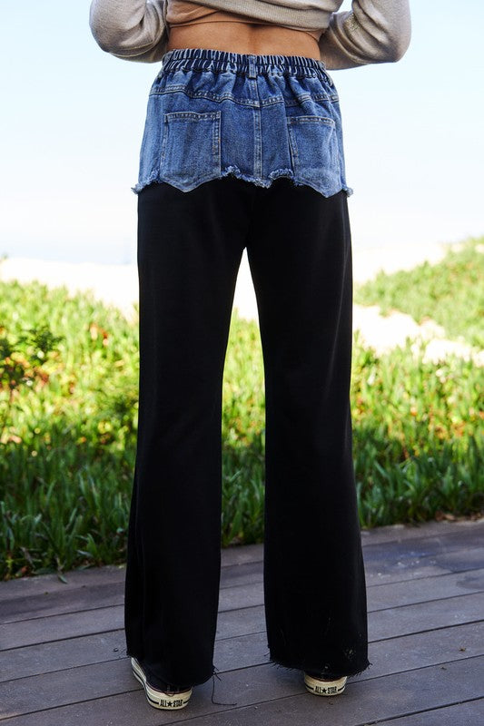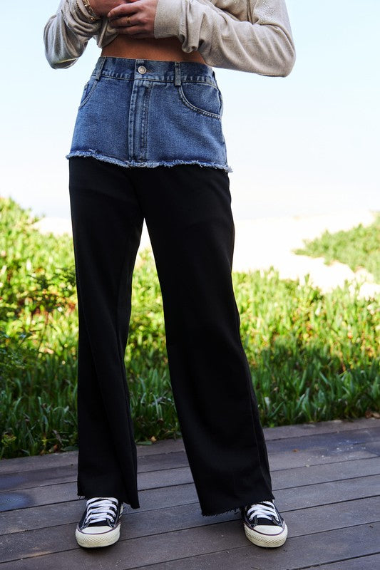 Davi & Dani Raw Hem Denim Patchwork Wide Leg Pants