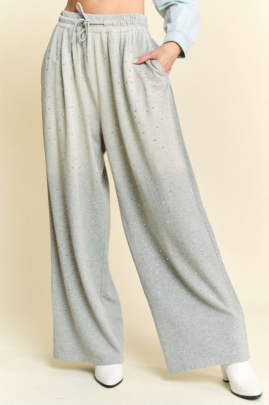Davi & Dani Rhinestone Drawstring Wide Leg Pants