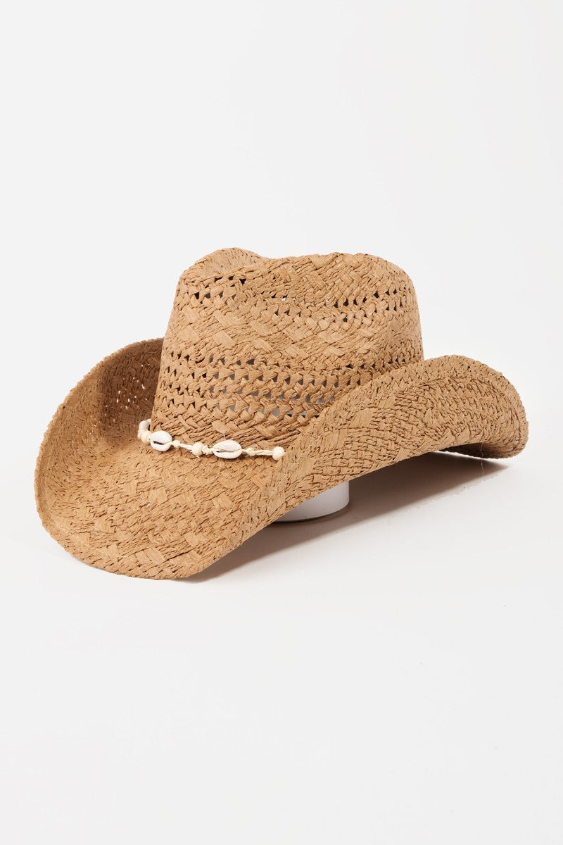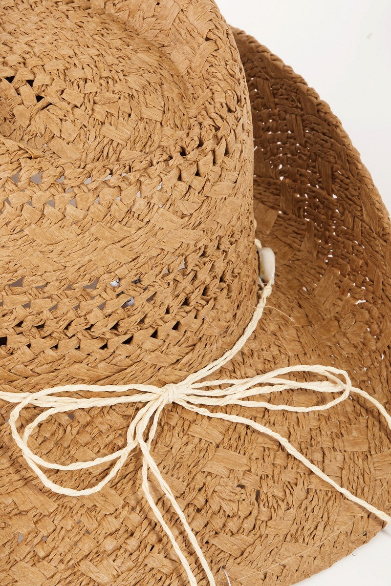 This openwork shell weave straw hat is a beautiful and unique accessory for sunny days. The openwork design adds a touch of elegance and whimsy to the classic straw hat style. This hat is lightweight and breathable, perfect for keeping you cool and stylish in the sun. Elevate your summer look with this charming openwork shell weave straw hat, ideal for adding a beachy vibe to your outfit.