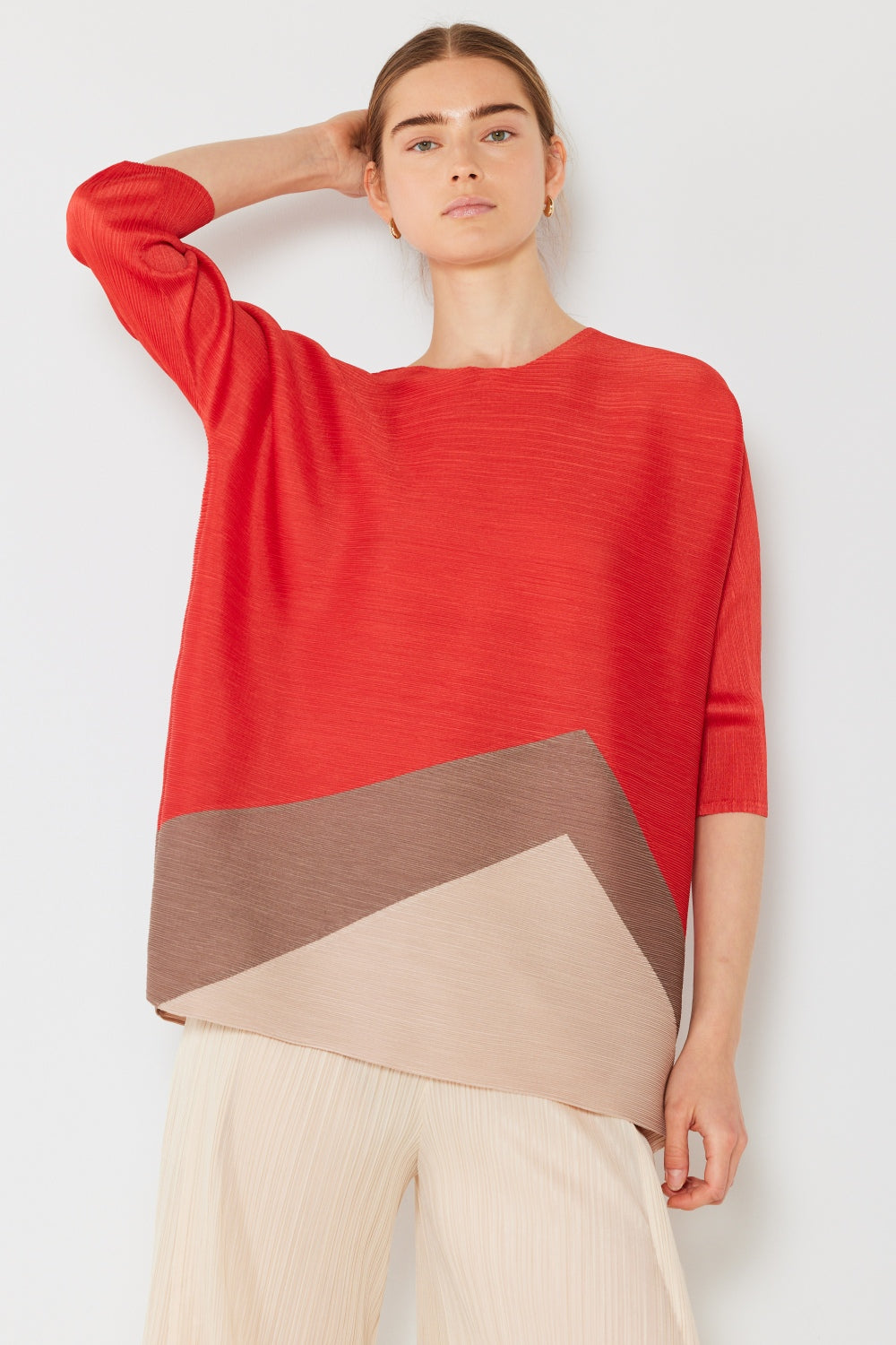 The Pleated Horizontal Rib Color Block Top is a trendy and eye-catching piece that combines texture and color for a unique look. With horizontal ribbing and color blocking, this top offers a dynamic and modern style. The pleats add dimension and depth to the design, creating a flattering silhouette. Perfect for adding a pop of color and texture to your outfit, this top can be dressed up or down for various occasions. Pair it with trousers for a chic office look or with jeans for a casual outing. Elevate your wardrobe with the fashion-forward and versatile Pleated Horizontal Rib Color Block Top for a stylish and contemporary ensemble.