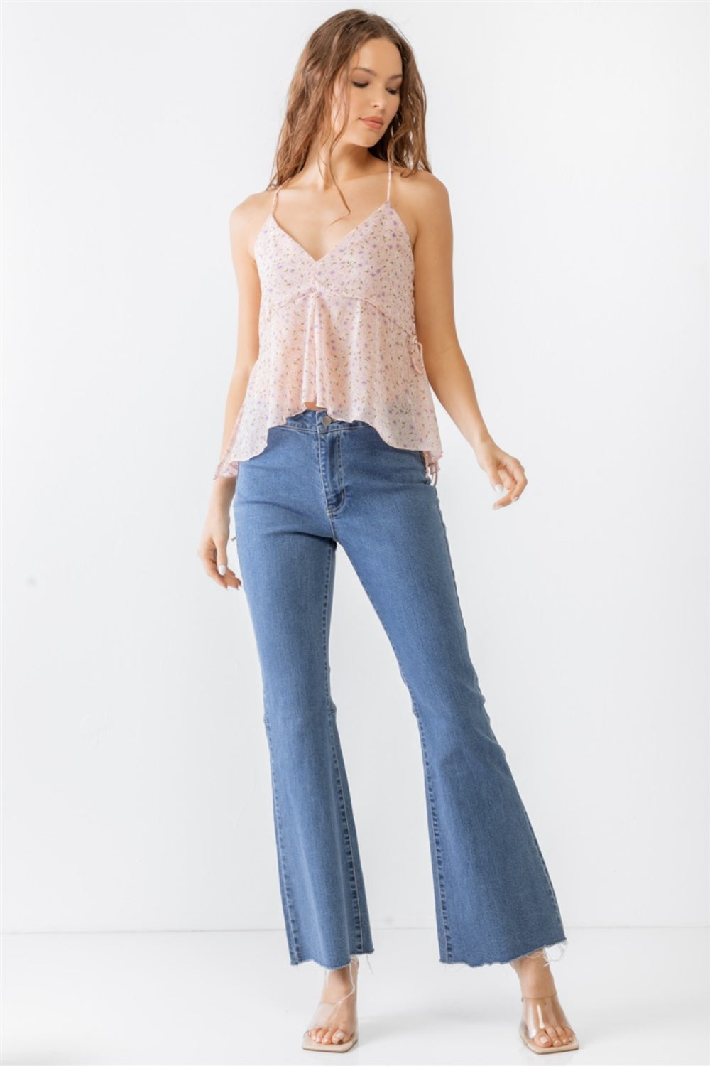 Miss Love / Kevin Co. Floral Print V-Neck Criss-Cross Back Flare Cami