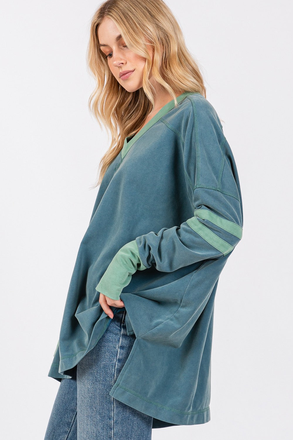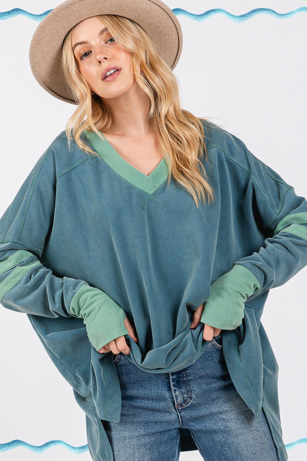 SAGE + FIG Mineral Wash Side Slit Contrast Top