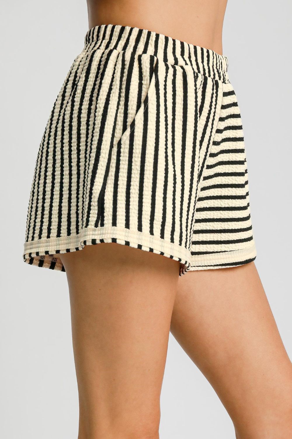 The Elastic Waist Striped Shorts with Pockets combine comfort and style with their elastic waistband and convenient pockets. These shorts feature a trendy striped pattern that adds a touch of flair to your summer wardrobe. Perfect for a casual day out or lounging at home, these versatile shorts are a must-have for a laid-back yet fashionable look.