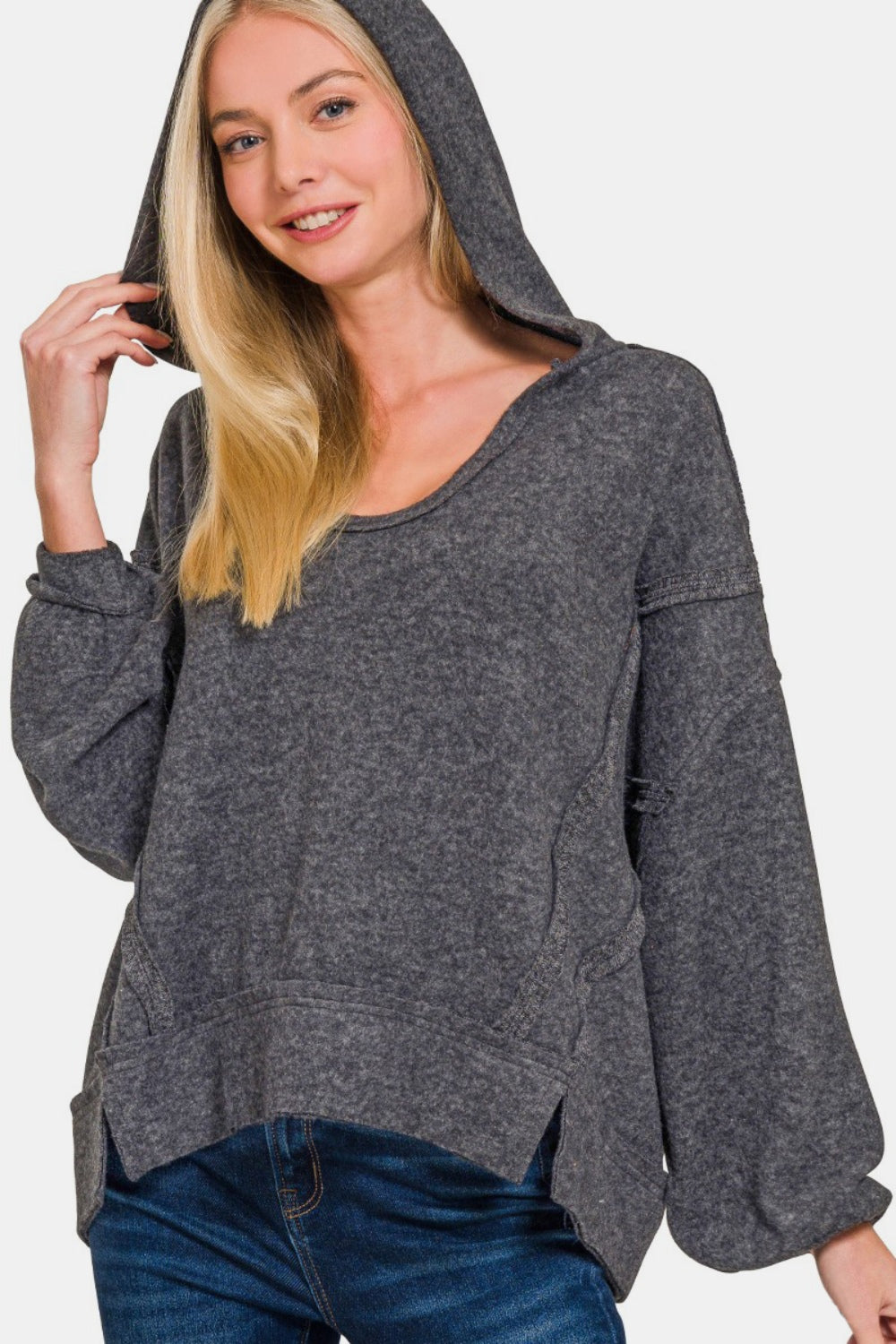 Zenana Brushed Hacci Exposed Seam Hoodie